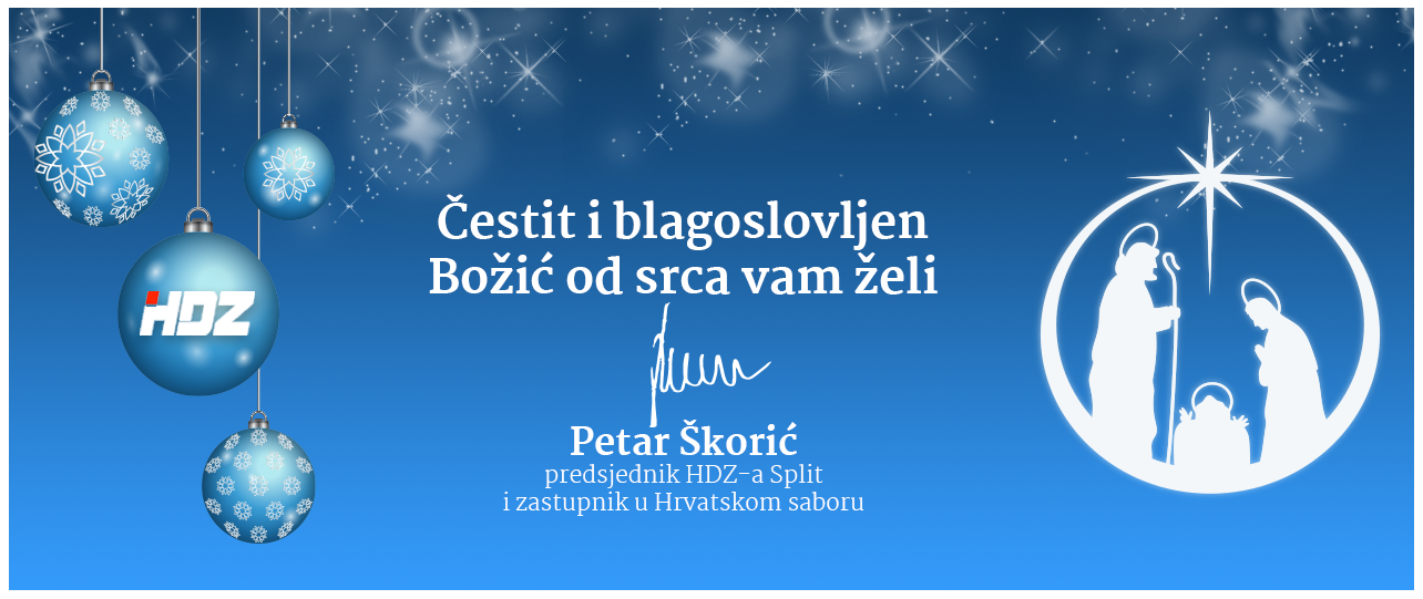 Božić je blagdan veselja, ljubavi, nade i optimizma i zato Vam od srca želim da ga u tom duhu i provedete. Neka nas Božićni duh nadahne i vrati najdražim doživljajima i osobnim i zajedničkim vrijednostima – općeljudskim, kršćanskim i hrvatskim, te neka nas potakne na dar ljubavi prema bližnjemu, hrvatskom narodu i našoj Domovini.